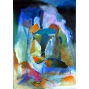 Maľba na sklo striebornou kontúrovacou farbou a vitrážovými farbami. Veľkosť cca 10 x 15 cm.