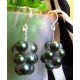 Visiace náušnice z postriebreného drôtu a sklenených korálok, veľkosť bez háčika cca 3 cm.
