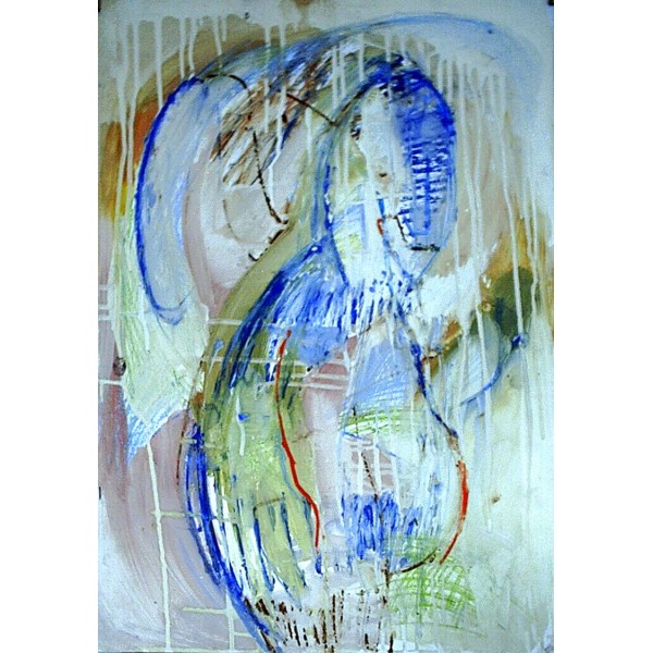 Maľba na papieri, akryl, suchý pastel, tempera, cca 42 x 60 cm, bez rámu.