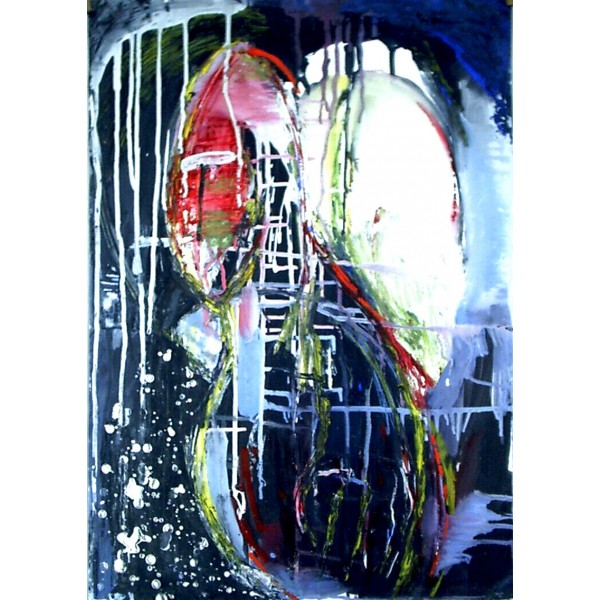 Maľba na papieri, akryl, suchý pastel, tempera, cca 42 x 60 cm, bez rámu.