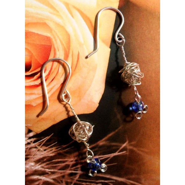 Visiace náušnice z postriebreného drôtu a sklenených korálok.