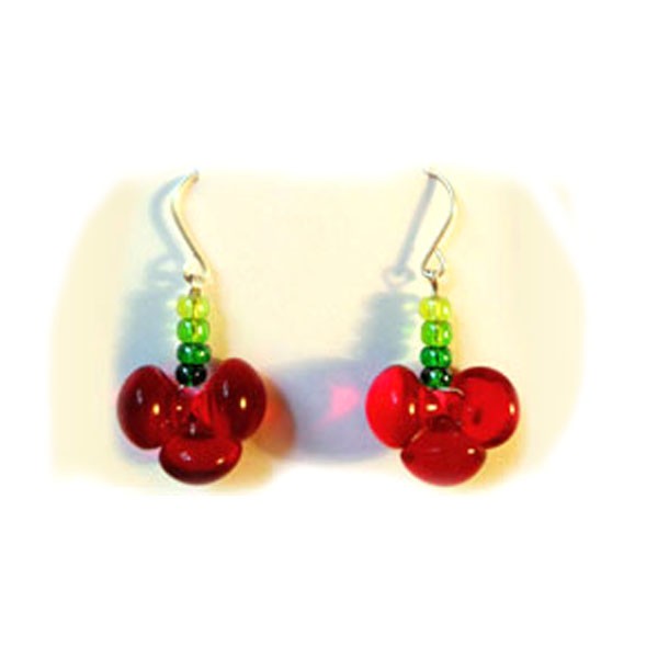 Visiace náušnice z postriebreného drôtu a sklenených korálok.