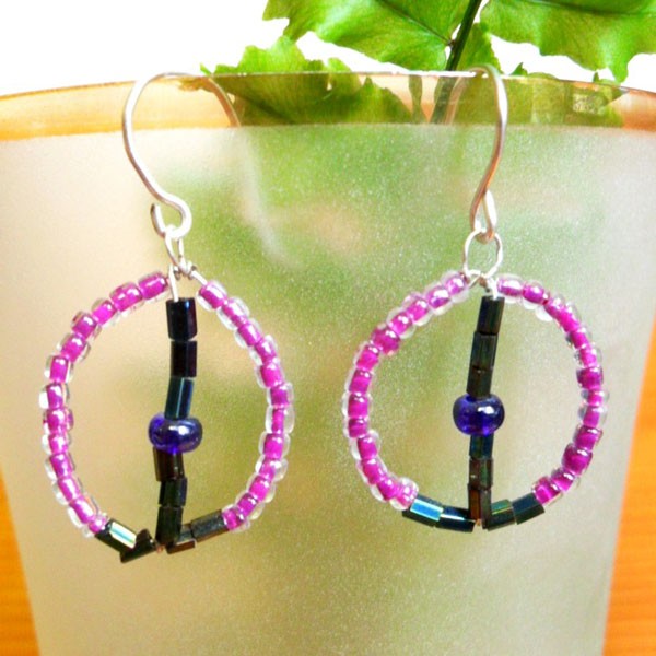 Visiace náušnice z postriebreného drôtu a sklenených korálok.