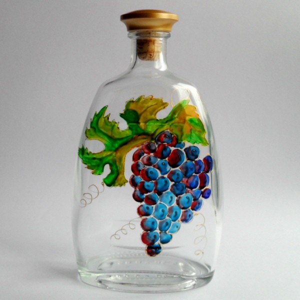 Sklenená flaša zdobená vitrážovými farbami. Objem cca 700ml. Výška cca 22 cm.