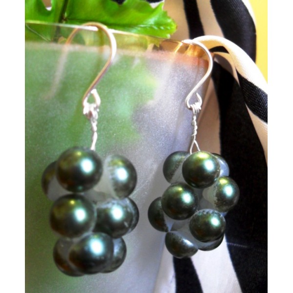 Visiace náušnice z postriebreného drôtu,umelých korálok, veľkosť bez háčika cca 3 cm.