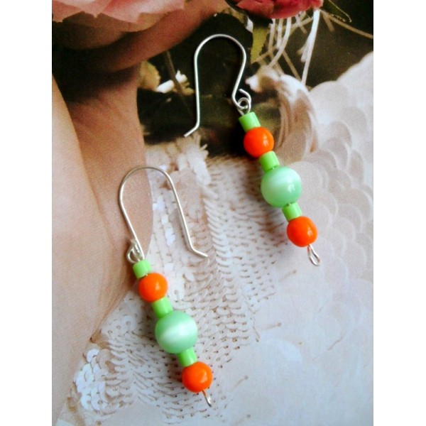 Visiace náušnice z postriebreného drôtu a sklenených korálok, veľkosť bez háčika cca 3 cm.
