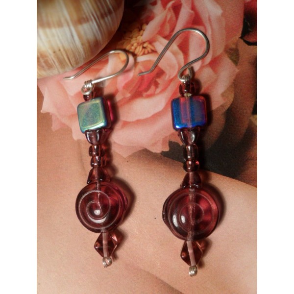 Visiace náušnice z postriebreného drôtu a sklenených korálok.