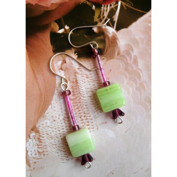 Visiace náušnice z postriebreného drôtu a sklenených korálok.
