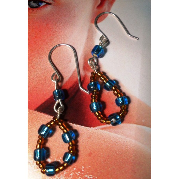 Visiace náušnice z postriebreného drôtu a sklenených korálok.