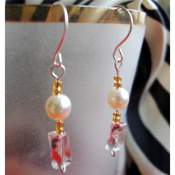 Visiace náušnice z postriebreného drôtu a sklenených korálok.