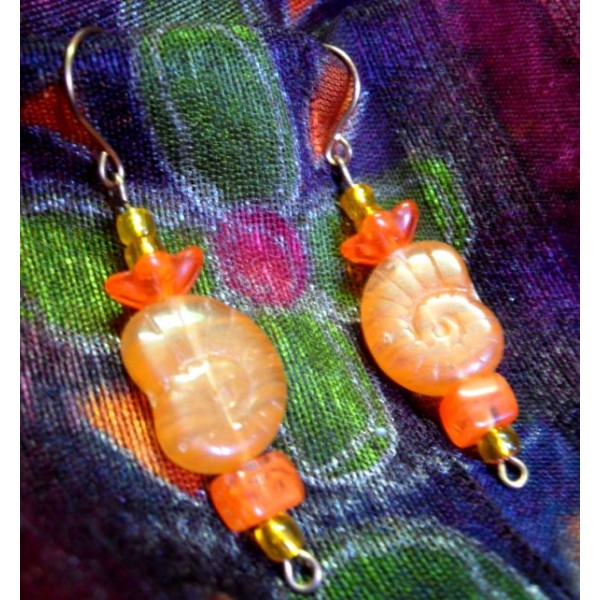 Visiace náušnice z postriebreného drôtu a sklenených korálok.