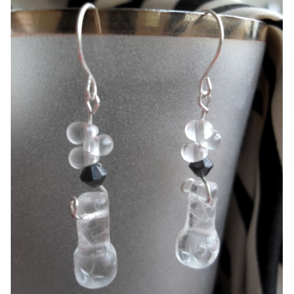 Visiace náušnice z postriebreného drôtu a sklenených korálok, veľkosť bez háčika cca 3 cm.