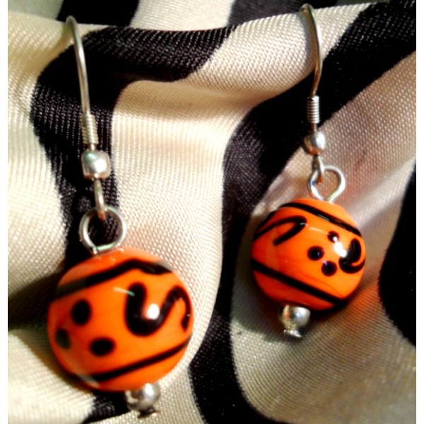 Visiace náušnice z postriebreného drôtu a umelých korálok, veľkosť bez háčika cca 2 cm.
