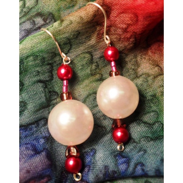Visiace náušnice z postriebreného drôtu,umelých a sklenených korálok, veľkosť bez háčika cca 3,5 cm.
