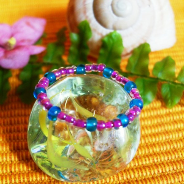 Prstienok zo sklenených korálok. Priemer cca 2 cm.
