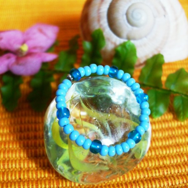 Prstienok zo sklenených korálok. Priemer cca 1,5 cm.