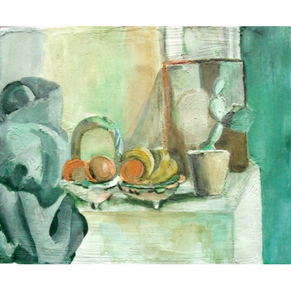 Maľba na papieri, tempera, 25 x 21 cm, v bielej pasparte a clip ráme.