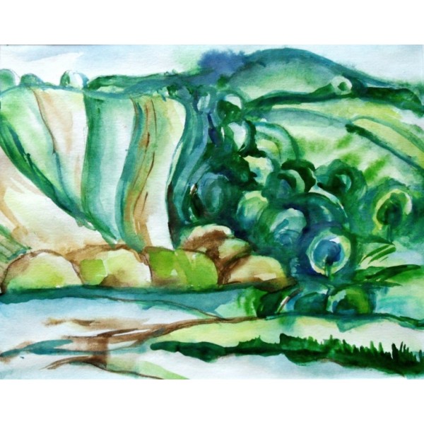 Parafráza obrazu od E.Zmetáka. Maľba na papieri, akvarel, 21 x 20,5 cm, v bielej pasparte a clip ráme.