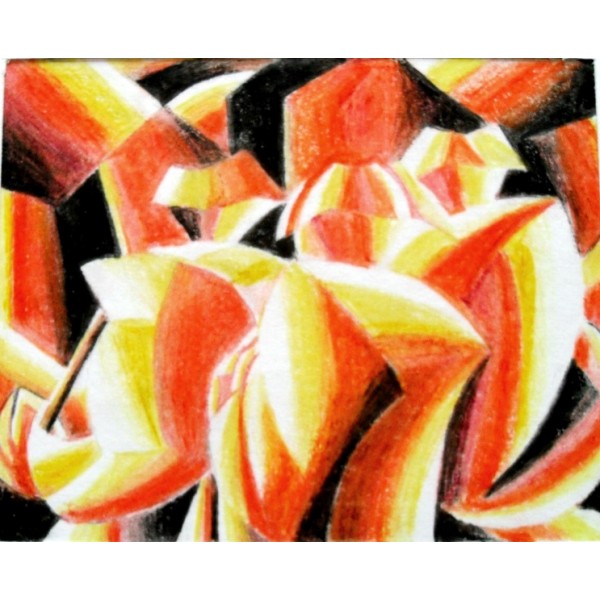 Maľba na papieri, mastný pastel, 25 x 20 cm, v bielej pasparte a clip ráme.