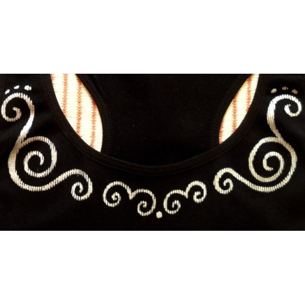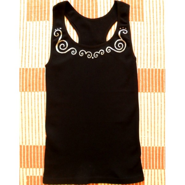Čierne elastické tielko ručne maľované striebornou farbou na textil. Veľkosť S.Doporučujem prať ručne.
