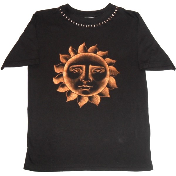 Čierne bavlnené tričko ručne maľované zlatou farbou na textil. Veľkosť M. Možnosť objednania ľubovoľnej veľkosti i farby trička po dohode e-mailom. Doporučujem prať ručne.