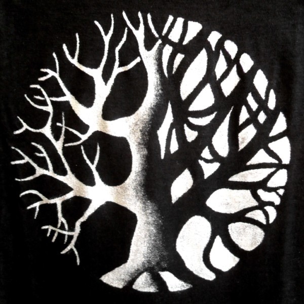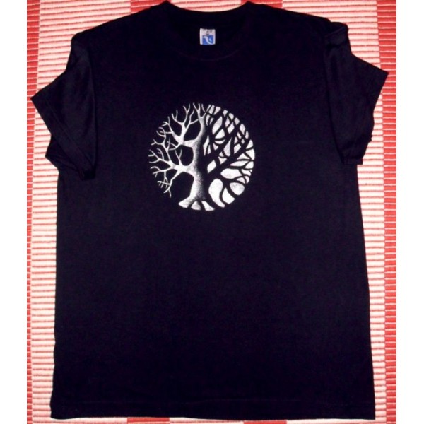 Čierne bavlnené tričko ručne maľované striebornou farbou na textil. Veľkosť M. Možnosť objednania ľubovoľnej veľkosti i farby trička po dohode e-mailom. Doporučujem prať ručne.