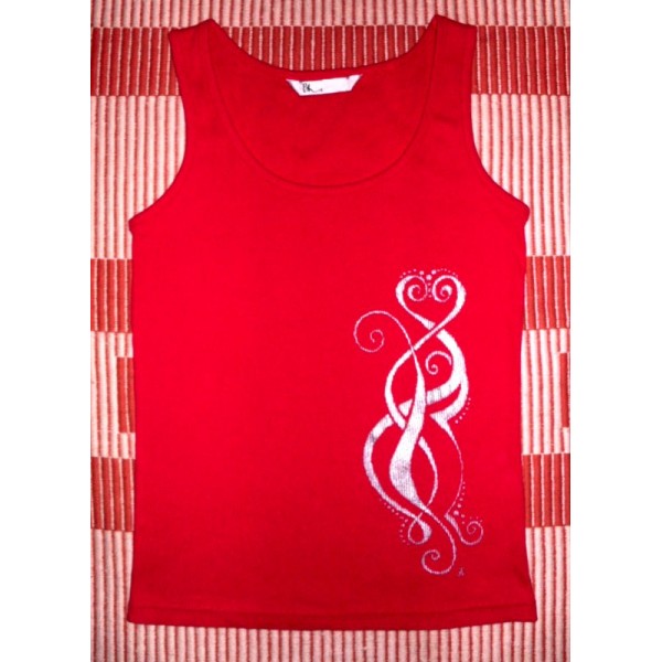 Červené bavlnené tielko ručne maľované striebornou farbou na textil. Veľkosť M. Možnosť objednania ľubovoľnej veľkosti i farby tielka po dohode e-mailom.