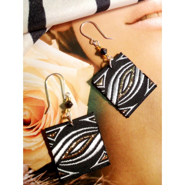 Visiace náušnice z postriebreného drôtu, sklenených korálok a textilu, veľkosť bez háčika cca 3,5 cm.