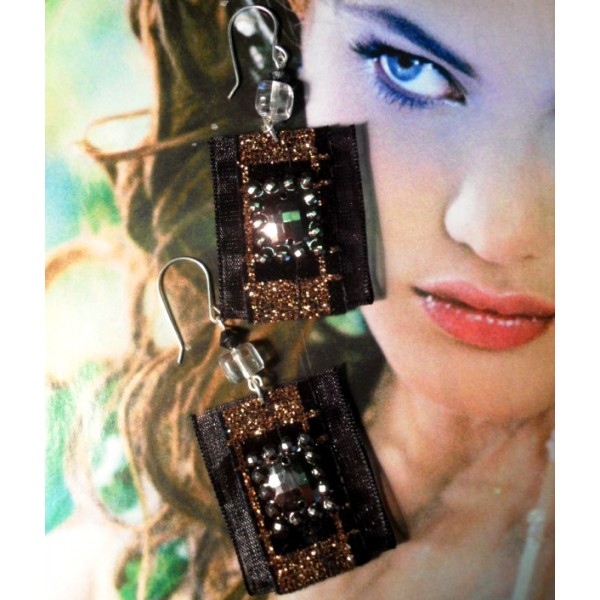 Visiace náušnice z postriebreného drôtu, sklenených korálok a textilu, veľkosť bez háčika cca 5,5 cm.