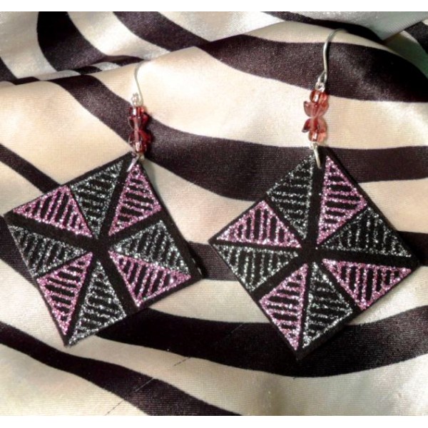 Visiace náušnice z postriebreného drôtu, sklenených korálok a textilu, veľkosť bez háčika cca 7 cm.